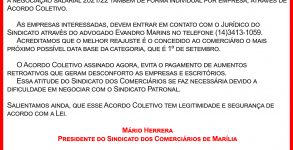 O Sindicato dos Empregados no Comércio de Marília começou a negociar o reajuste salarial 2021/22 da categoria dos comerciários de forma individual através de Acordo